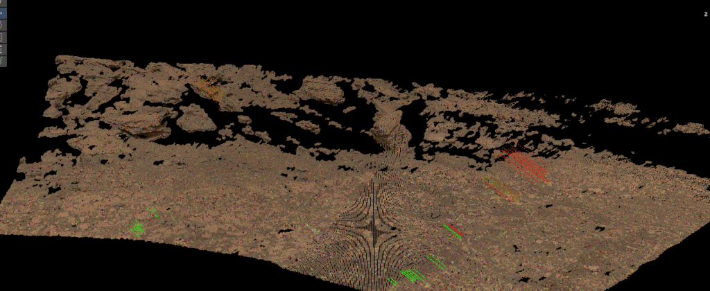 This project explores reprojection error through real-time rendering of point clouds of the martian terrain. The input data is from the Mastcam-Z onboard NASA’s Perseverance Rover. The 3D position of the points are derived from JPL’s .XYZ products which are a result of multi-view stereo processing. The visual enables researchers to gain an understanding of error patterns and locate potential imprecision in camera calibration.