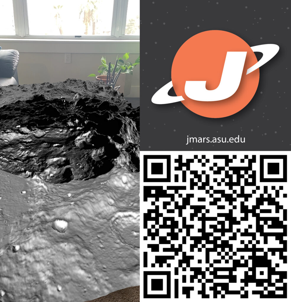 Scan the QR code on the left to see the Perseverance Rover’s landing site, Jezero Crater, Mars.